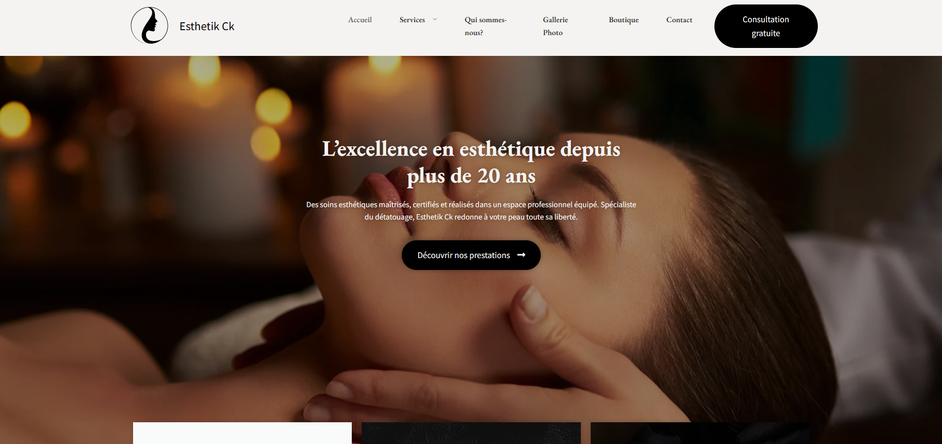 Esthétique CK souhaitait se doter d’un site web moderne afin de structurer sa présence en ligne et permettre à sa clientèle de prendre rendez-vous facilement.