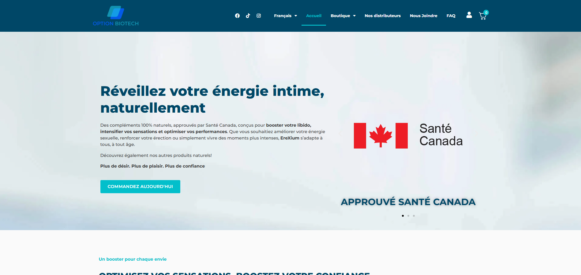 Option Biotech peut maintenant acquérir des clients via les moteurs de recherche et générer des ventes 100 % en ligne grâce à une plateforme performante et professionnelle.